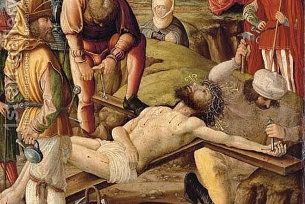 Consider the sheer physical pain he is suffering. Metal spikes tear through his muscles and tendons. They press directly against his bones as they hold his body to the cross. If he attempts to relax and simply hang by his hands and his feet, he can’t breathe. If he pulls himself up to breathe, his muscles quickly cramp, locking his arms, neck, and back in spasms of pain.