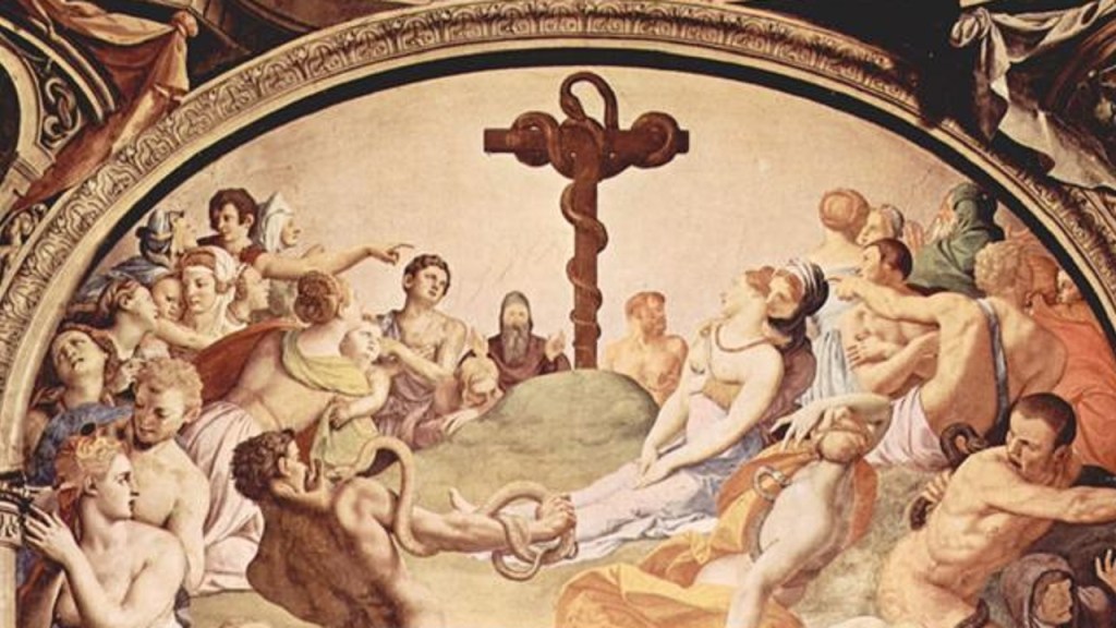 Numbers 21:8-9 “The Lord said to Moses, ‘Make a snake and put it on a pole; anyone who is bitten can look at it and live.’ So Moses made a bronze snake and put it on a pole. Then when anyone was bitten by a snake and looked at the bronze snake, he lived.”