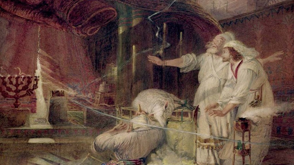 The remaining one day in the year the High Priest entered that room to sprinkle the blood of sacrifices on the ark of the covenant–first for himself, then for the people. He was the only one who could do this. The rest of the world’s population was required to stay on the other side of the curtain that separated this room from the rest of the temple.